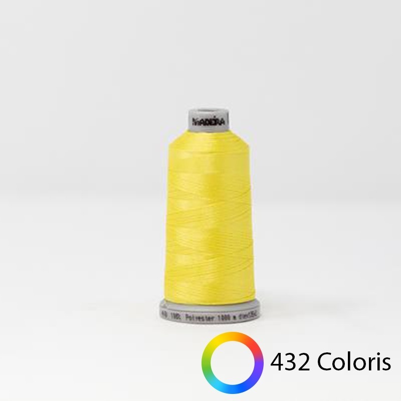 Les bobines de fil à broder Madeira - Polyneon 40 de 1000 mètres sont idéales pour les traitements stone-wash et les textiles hautement sollicités qui doivent être lavés couramment, comme les vêtements de sport, denfants et de travail, le linge dhôtel et de restaurant.