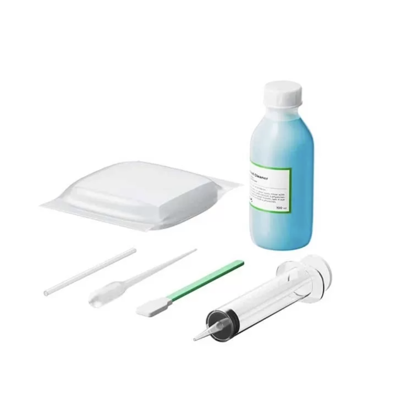 Le kit de nettoyage xTool pour imprimante Apparel Printer DTF comprend 50 feuilles de tissu non tissé, 20 coton-tiges nettoyants, 5 seringues de 20 ml, 1 flacon de solution nettoyante de 100 ml, 5 tuyaux de 125 mm ainsi que 2 flacons compte-gouttes de 2 ml.